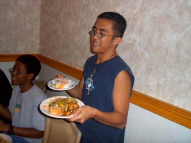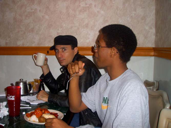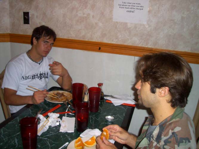 Andrew and Alex, Alex gives the food 1 thumb up.