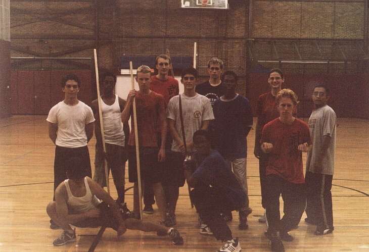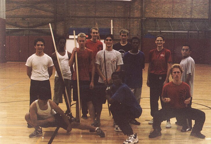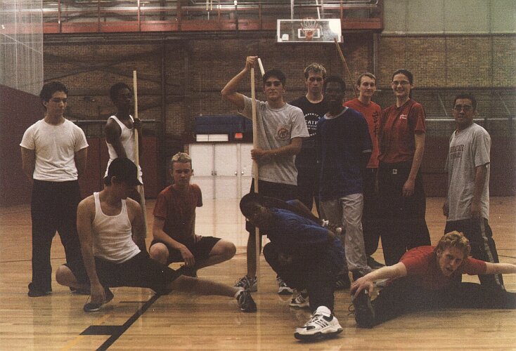 A group photo at the beginning of Fall 2004 taken after practice. (From left to right) Standing: Mike Serritella, Cintron Crankfield, Chase Karcher, Chris Bradley, Steven Sakata, Chris John, Andrew Dorn, Rachel Roman, Justin DeAngelis, Lloyd Romero. Crouching: Clint Devia, Mike Wright