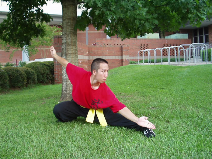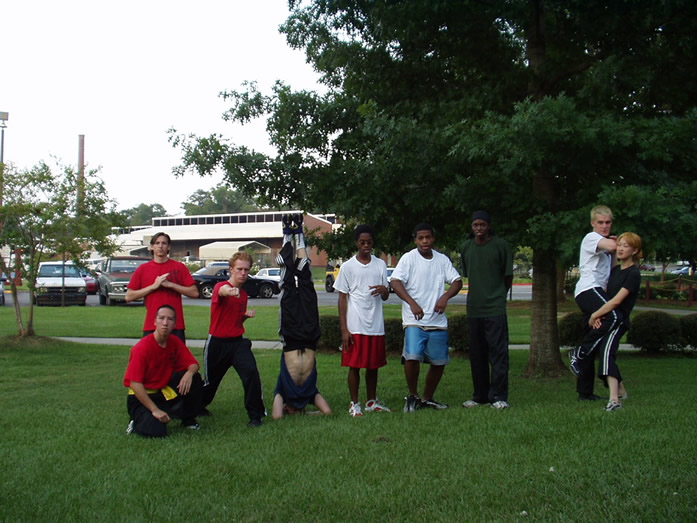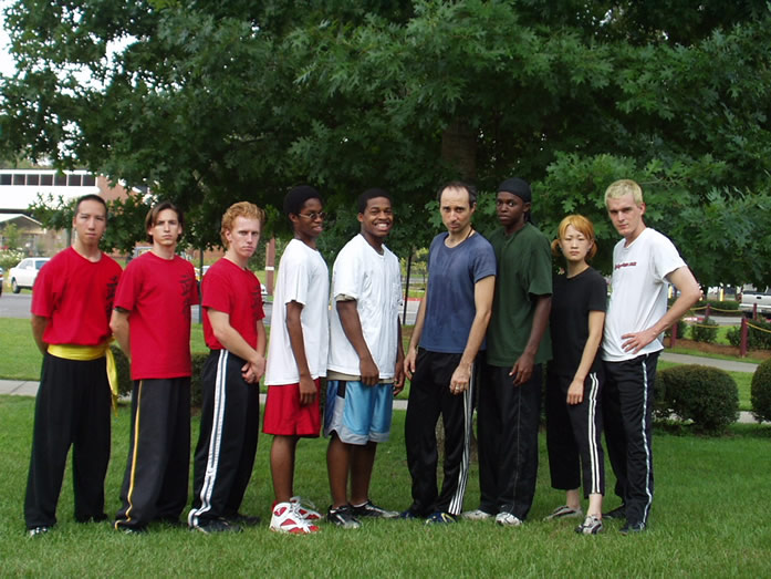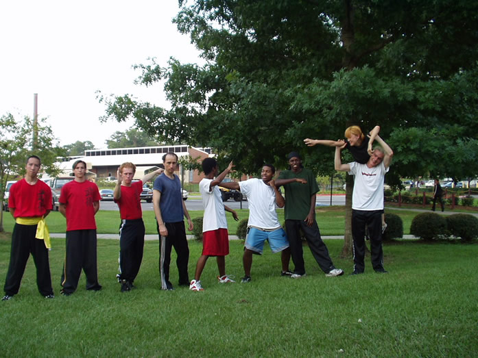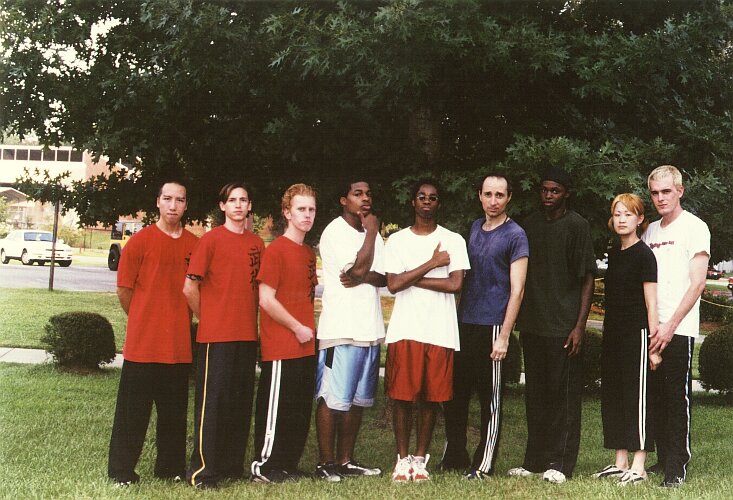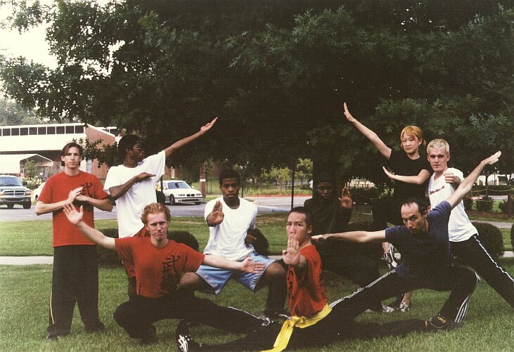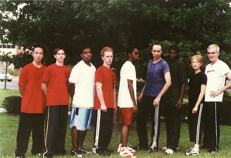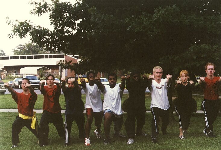 Fun shot! (From left to right): Chris Cruz (salute), Cintron Crankfield (ging gi du li), Justin DeAngelis (pu bu), Kris Willis (ma bu), Alex Ng (front split), Matthew Crenshaw (ma bu), Michael Carlucci (pu bu), Yoomi Park (ging gi du li), Micah Villmow (gong bu)